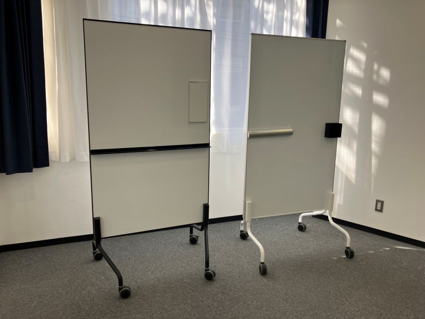 移転に伴い再構築したショールームでは弊社を代表する製品である超薄型壁面ホワイトボードSMWを様々な表面材パターンでご覧いただけるほか、超短焦点プロジェクターによるホワイトボードへの投影も確認可能となっているため、より具体的な納入イメージを実感いただけると思います。